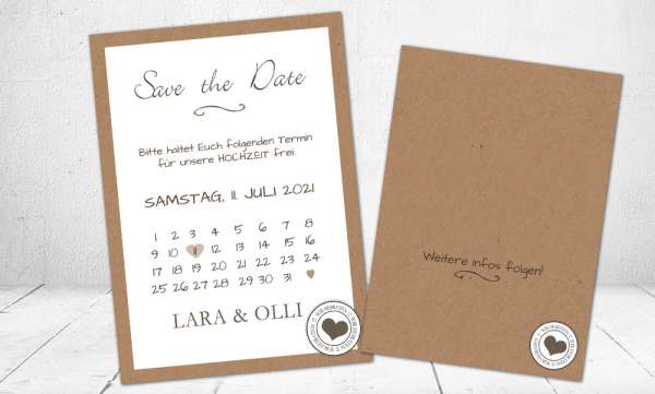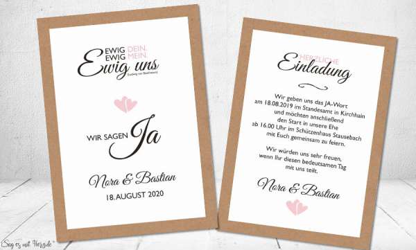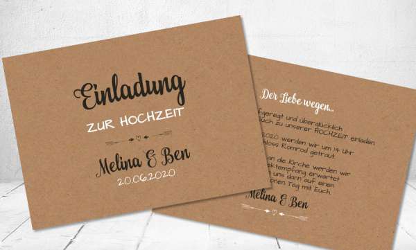 Einladungskarten Hochzeit Kraftpapier