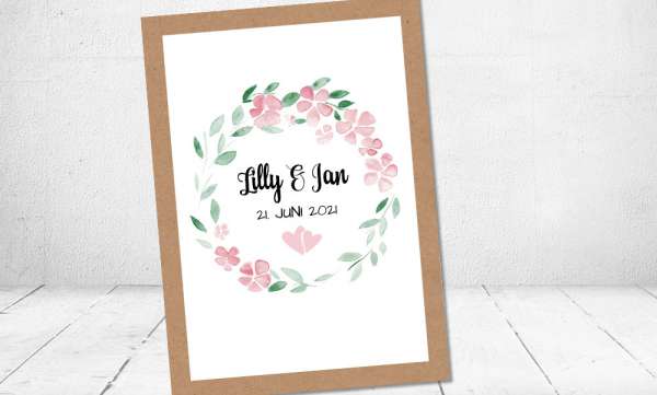 Rustikales Kraftpapier ist eines der im Moment angesagtesten Materialien wenn es um Vintage Hochzeiten geht. Das Natural Papier zeichnet sich durch eine sehr hohe Qualität aus braunem Naturkarton aus und versprüht ein romantisches Flair. Vereint mit modernen Schriftzügen und floralen Aquarell Handzeichnungen liegen Sie mit einer Kraftpapier Einladungskarte voll im Trend.